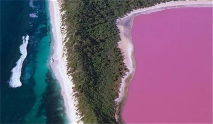 4.位于澳大利亚西部的希利尔湖也以其粉红色而闻名,湖泊与巨岭相隔,而巨岭的另一侧则是辽阔的大海,清澈的碧蓝海水使湖泊显得更加独特。