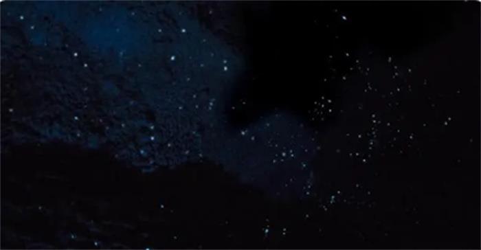 这些辉光虫的幼虫产生的蓝绿光,是由于体内的酶和色素与空气中的氧气混合而引起的。它们的发光现象不仅创造了一种神奇的效果,还在洞穴的顶部、隧道和人行道上闪烁着蓝绿色的光芒,形成了一种宛如银河系的景象。