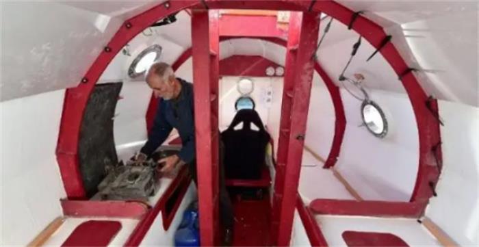 萨文自制的漂流桶看起来像一个巨大的酒桶,内部设有小厨房、单人床和一些储物空间。他在临时的家中设置了多个窗户,这些窗户将为他提供娱乐,让他能够观赏到游弋在海中的鱼群。