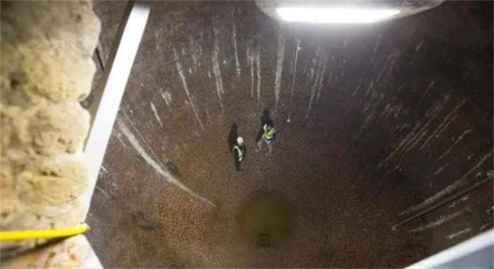 这个蛋形的洞穴有着9.5米的深度和7.5米的宽度,在战争时期遭受轰炸后,被碎石填满,经过三个月的精心挖掘才完全显露出来。一旦清理完毕,它展现出保存完好的地下密室,其结构看起来仍然非常坚固,即使在地下10米的位置,雷声也无法传入。