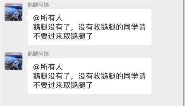 在好奇心的驱使下,有越来越多的网友慕名而来,想要尝一尝倍受追捧的鹅腿,究竟有多美味,在此影响之下,本来就供不应求的鹅腿,如今却需要学生们通过线上微信预约的方式才可购买到,而且数量有限,为了满足诸多学校学生对于鹅腿的需求,“鹅腿阿姨”针对此事件表示:“会加大力度制作鹅腿,会轮流前往每一个学校,将鹅腿送到学生的手中。”