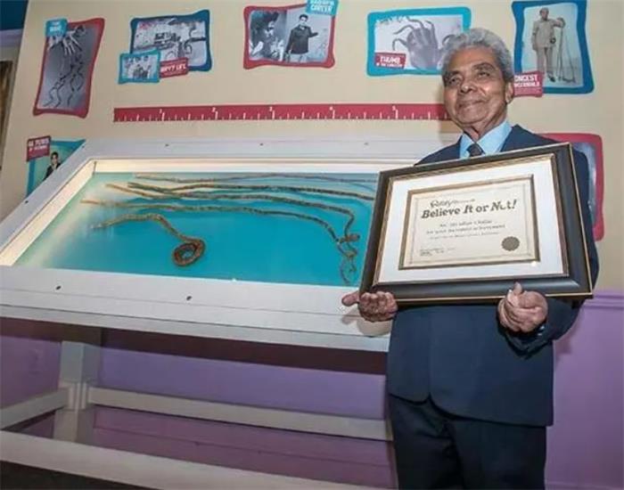 后来“长指甲狂人”成了一个世界上指甲最长的人,他也因指甲而获得了吉尼斯世界纪录,他也因此一举成名。