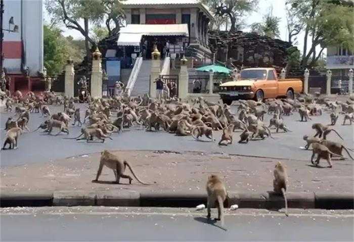 震惊全球的就是2020年3月12日,泰国华富里寺庙附近爆发了一场猴子之间的地盘争夺战。