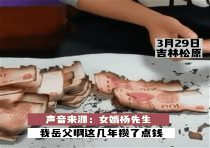 老人以为这些钱毁了,不过还是把自己的女儿和女婿给叫了回来,看看女儿和女婿这样的年轻人有没有什么办法。女婿在经过了清点之后,发现这些纸币,虽然大多数已经被烧到,但是还有一部分保存的相对完整。于是女婿带着老人前去附近的银行兑换被烧毁的纸币。