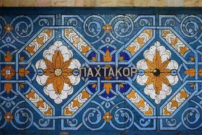 当火车从塔什干火车站出来时,陶瓷壁画就会显露出来。