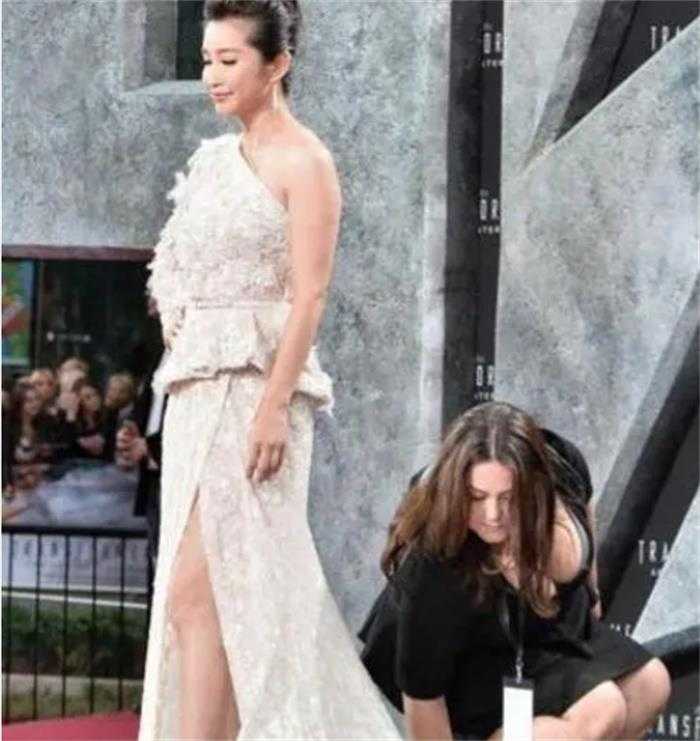 大明星李冰冰参加一个活动,身穿华服化着精致的妆容,