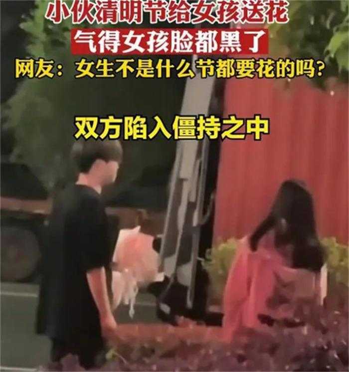 因为这个男孩儿送花的节日并不是情人节,也不是七夕节,这样浪漫的节日反而是纪念亡魂的清明节,不知道这个男生是怎么想,居然会在清明节的时候给自己喜欢的女生送花表白。而这个女生当时脸色就变得很不好,然后就转过身去直接离开,并没有再搭理这个男生。