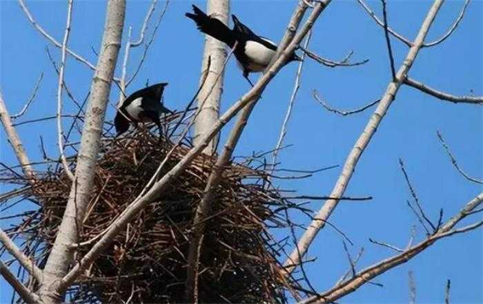 喜鹊窝的制作和维护是一项非常复杂和艰巨的任务,它需要喜鹊的智慧和努力。喜鹊窝的制作一般是由一对喜鹊共同完成的,它们会选择一棵高大而稳固的树木,作为喜鹊窝的基地。