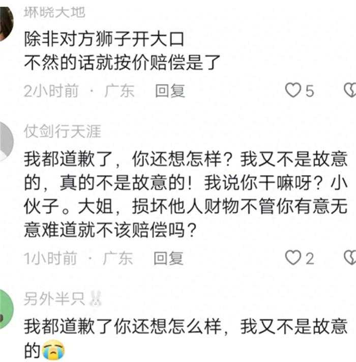 有一部分人认为这个小伙子拿着这么贵的电脑应该自己保护好,大妈碰掉了自然是有责任,不过不可能造价买一个16000元的电脑,而是应该出一个修补屏幕的费用。这个碰掉他人电脑的大妈,和他同行的白衣男子一起耍无赖的样子,并不像是什么好人。