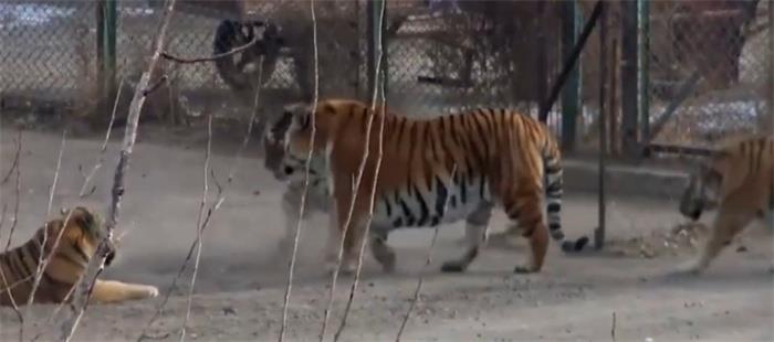 据了解,这段视频是在哈尔滨地区的一家动物园中拍摄的,视频中一名网友从雪地拿了一捧雪,朝着围栏中的东北虎扔了过去,原本以为东北虎会害怕会躲开,没有想到在被雪泼了以后东北虎会变得更加兴奋,所有围栏中的东北虎都开始纷纷向旅客跑去。