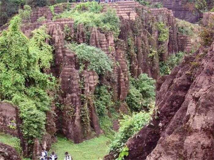 阳光明媚的日子来到这里,在阳光的照耀下,眼前的石林一片通红,一座山像熊熊燃烧的火焰,像传说中的火焰山;当天气阴沉时,石林的颜色会变得暗淡,山的颜色会从火红变成栗色;当雨天来临时,另一幕会出现在你面前。
