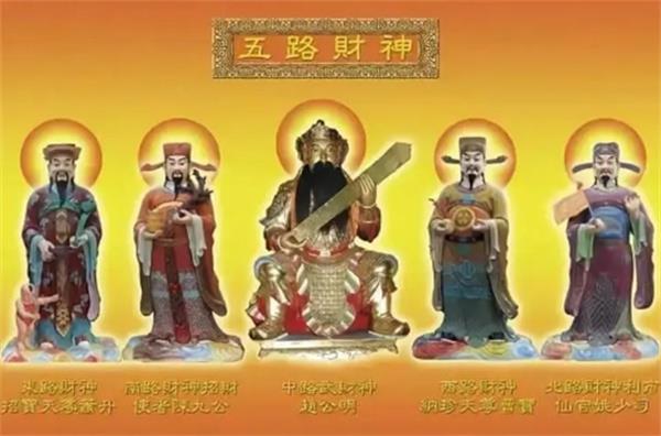 五路财神在中国民间是非常受欢迎的神灵,由于受到五行观念的影响,人们认为天地非常广阔,财宝要进行区分处理,拜五路财神就可以将东南西北中五方之财尽收。五路财神分别指的是东路财神比干、南路财神柴王爷、西路财神关公、北路财神赵公明和中路财神王亥。