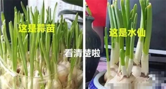 经常发生误食水仙事件的原因是水仙与蒜苗非常相似,不仔细观察的话,经常会把两者弄混,但是也并不是不能分辨,与蒜苗相比,水仙的叶子要相对来说短一些,并且要厚一些,大蒜的叶子则相对来说比较薄。水仙的根茎大多数呈现的是卵形或者是圆锥形,更像洋葱。而大蒜的鳞茎通常都是蒜瓣,蒜苗属于蒜瓣儿短缩硬盘的侧芽。