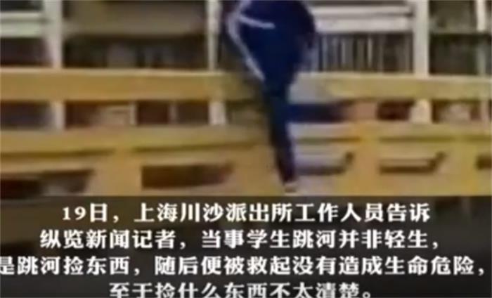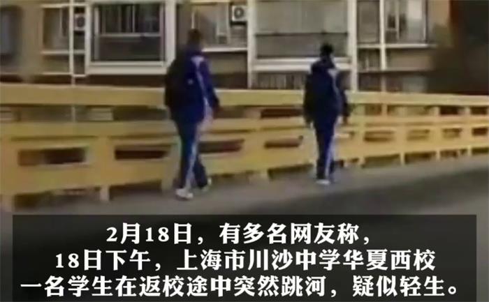 多名网友爆料,上海市川沙中学华夏西区的一名学生,在2月18日下午返校途中突然跳河,疑似轻生。此事在网上引发广泛热议。派出所工作人员对此事进行回应表示这名学生并不是跳河轻生,而是有东西掉到了河里,想要跳河捡东西。具体检的是什么东西,派出所工作人员也表示并不清楚。