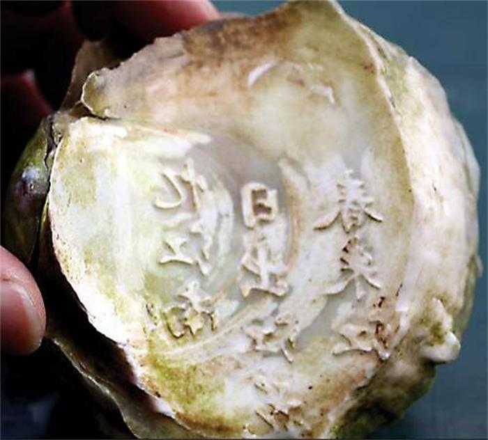 福安市下石镇白招小学校长彭忠意外捡到一枚罕见的刻字牡蛎壳,根据一位熟悉牡蛎生殖的工作人员推测该牡蛎壳可能是生长时附着在某刻字的圆柱上。根据彭忠介绍:“自己是在不久前的一天下午到福安白马河畔踏青,发现了个头硕大的牡蛎壳,把这没黏着沙土的牡蛎壳捡起来的时候发现壳的凹面‘长’着字。”