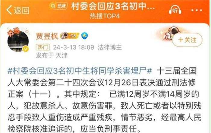 3名初中生杀害同学 是否会被追究刑责吗