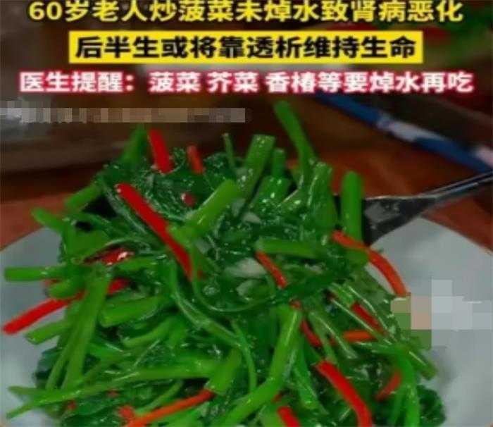 近期,一则新闻突然引起了社会各界的广泛关注与热议,原因来自于一名60岁老人长期使用未焯水的菠菜导致肾病进一步恶化,对生命健康造成了极为严重的威胁,这起事故的发生也迅速引起了人们对于饮食健康的广泛关注。