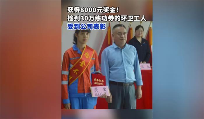 捡到30万练功券的环卫工获奖8000元 高尚品质需弘扬