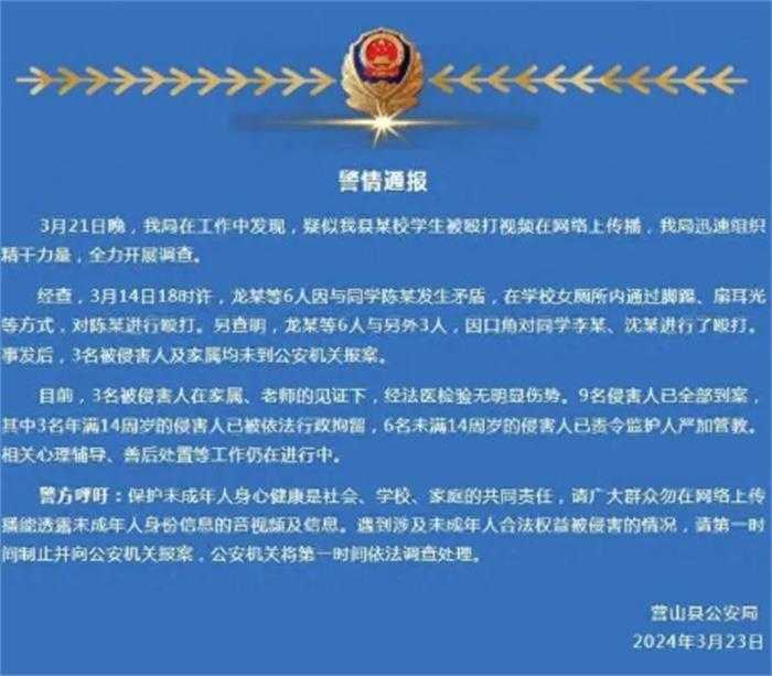 四川南充营山警方出手神速,严厉打击校园霸凌!
