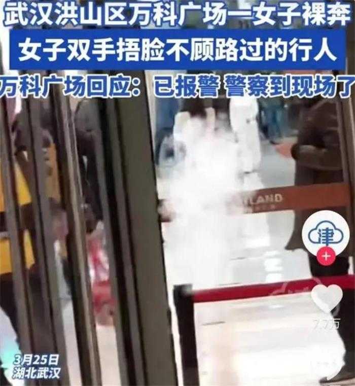 3月25日,湖北武汉洪山区万科广场商场内,突然出现了一位与众不同的女子。只见这位女子用双手捂着脸在商场内裸体奔跑。