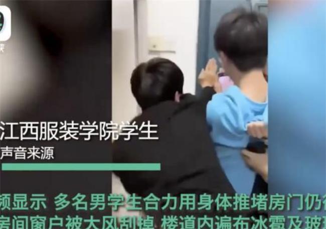 4月2日,强对流天气席卷了江西,多地都已经出现了狂风加冰雹的恶劣天气,而江西服装学院多处地区也因为强烈的天气影响,玻璃破碎食堂以及宿舍内出现了一片狼藉。在网络当中所公布出来的视频可以看到有多名男学生会用自己的身体阻挡住宿舍的房门,看起来非常的吃力,而房间的窗户都已经被大风所刮掉,就连楼道内部都布满了冰雹以及碎玻璃。