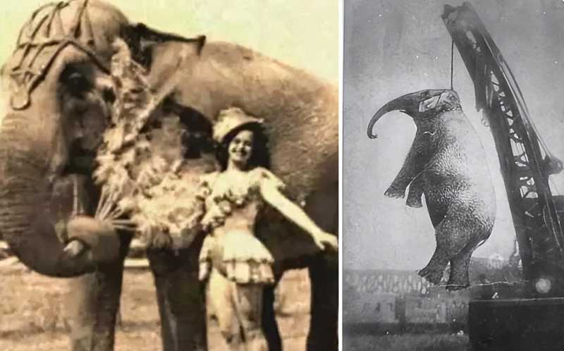 14、1916 年,在田纳西州金斯波特,玛丽在人群面前被一头 5 吨重的大象杀死。 1916 年 9 月 13 日,人群要求伸张正义,并把她从起重机上吊死。在她的训练师被杀后,玛丽被冠以多个名字,包括“大玛丽”和“谋杀玛丽”。