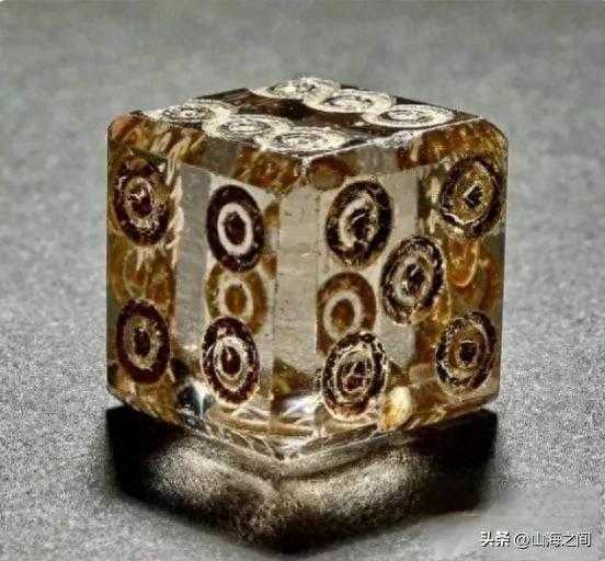 一颗2000年前的罗马水晶骰子,上面刻有1到6的数字,看起来就像我们今天使用的骰子。