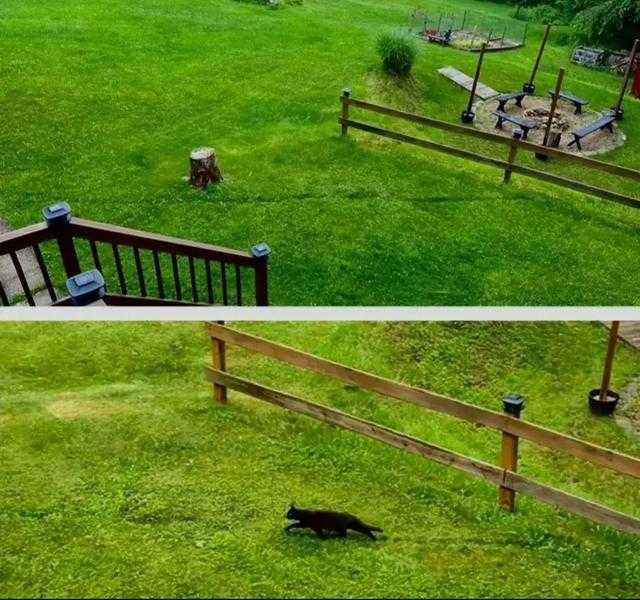 猫每天离开猫主人家的路线,都是固定的。久而久之,草坪上出现了一条小小的“猫道”。