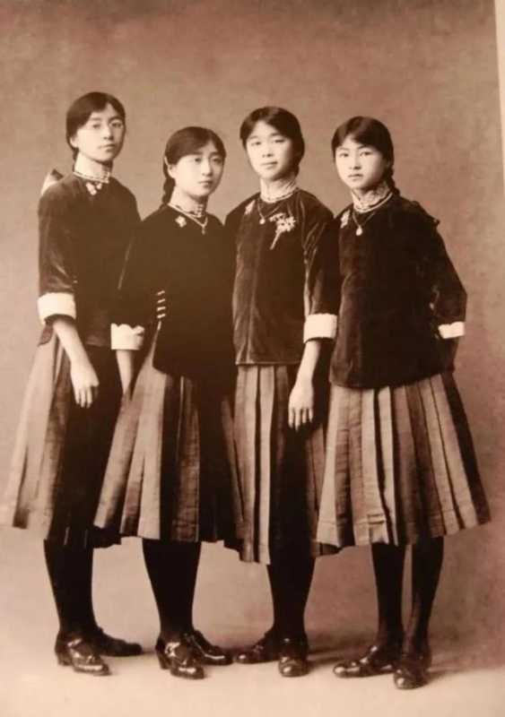民国时期的女学生合照。最右边的是林徽因,其他人和林徽因属表姐、表妹关系。