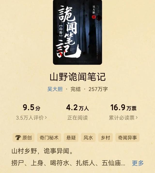 简介:小说以西南乡村为背景,主角吴重出生于1986年冬天的一个闭塞村子,因八字太轻得名。他行走在人群和俗世之外,经历着各种常人难以窥见的隐秘诡异之事,如捞尸、上身、喝符水、扎纸人、五仙庙、问米过阴、阴山走蛟等。在这个过程中,吴重不断成长,与各种妖魔鬼怪和神秘势力打交道,逐渐揭开隐藏在山野乡村背后的神秘面纱。