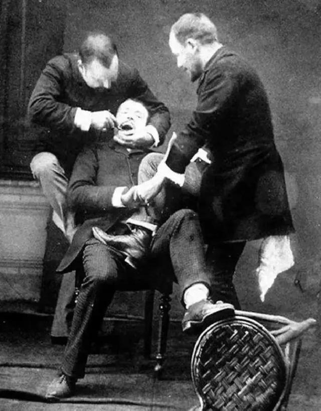 过去的世界则更直接,麻醉药还不普及的时候,拔牙要两个人配合,一个人死按,一个人快速用力拔,这种手法现在看起来太生猛,可背景里就是医疗手段不足,所以才要速度换痛感控制