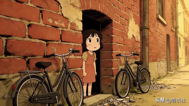 她想起,母亲是骑着自行车带她来的,便想靠自行车分辨方向。可奇怪的是,门洞两边都停着一模一样的自行车,就连后座专属她的小座位,也完全相同。