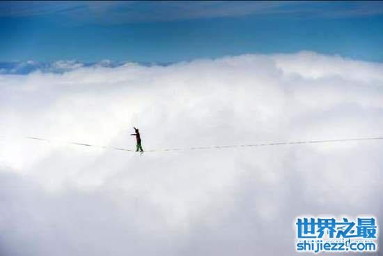 其实也差不多了,他是瑞士莫雷松山举办的高空走钢索活动Highline Extreme的参赛者。