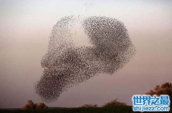 其实这是一大群的椋鸟,在内盖夫沙漠北部跳着他们的日落之舞。