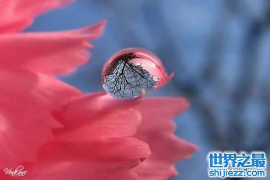 但这其实是一名摄影师在很巧妙的时机以极近距离捕捉到水滴映出天空倒影的照片。