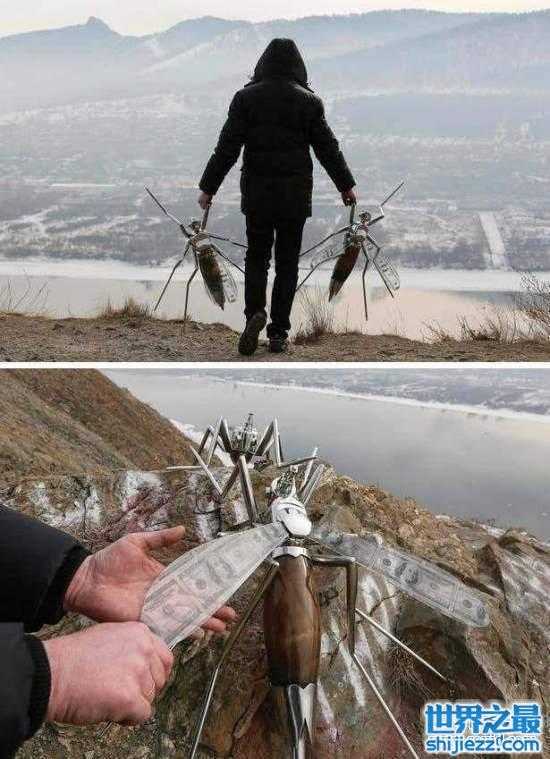 这些巨大蚊子是俄国艺术家Vasily Slonov的作品“Oil Mosquitoes”(石油蚊子)。