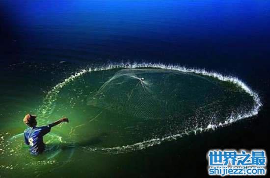 看仔细一点,其实这张照片是拍下了渔网刚接触水面的瞬间。