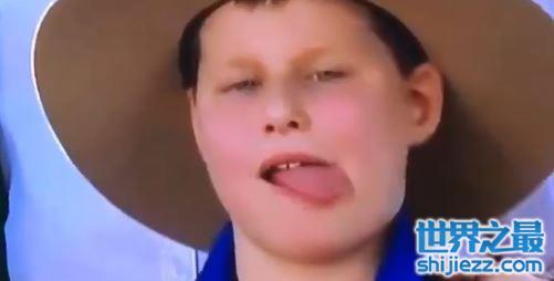 说时迟那时快,突然有苍蝇飞到小男孩脸上。小男孩眉头稍微一皱,结果居然没有伸出手把苍蝇挥走,反而是伸出舌头直接把苍蝇黏进嘴里。而且吃完一只,难道是开胃了?居然还接着继续吃第二只。