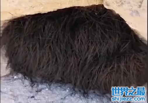 洞口中露出黑色绒毛,乍看之下像是某种哺乳动物。