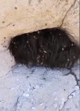 神秘生物现身? 2名登山客经过墨西哥西北部山区时,发现路边有团毛绒绒的黑色生物卡在洞口,看似是某种正在冬眠的哺乳类,好奇之下,直接拿木棍戳了两下,没想到这团生物居然整个“炸开”。
