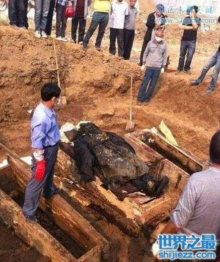 3.石棺内有一具古尸百年不腐保存完好,而且内脏也都在并不是木乃伊的制作方法,也没有采取任何的防腐措施。