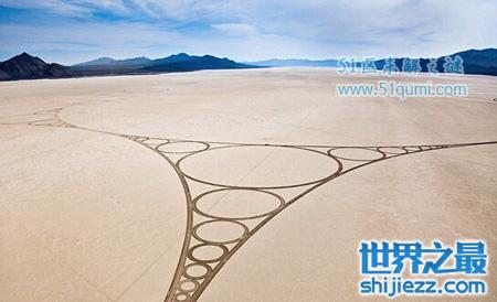 青海德令哈外星人遗址沙漠怪圈出现是一个谜团,很难想象一个巨型图案在一夜之间突然冒出来,而且还是带有复杂图案的形状,至今都没人能揭开沙漠怪圈是来自于哪里怎么形成,沙漠怪圈成了一个未解之谜。