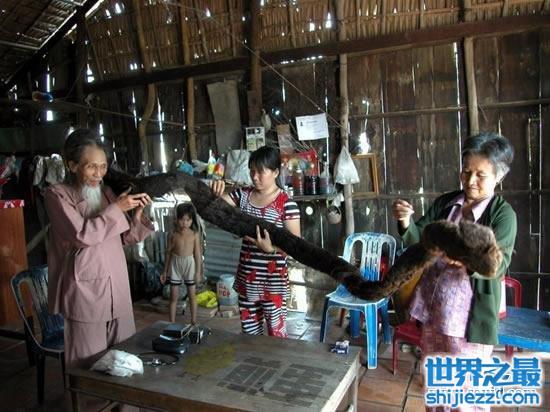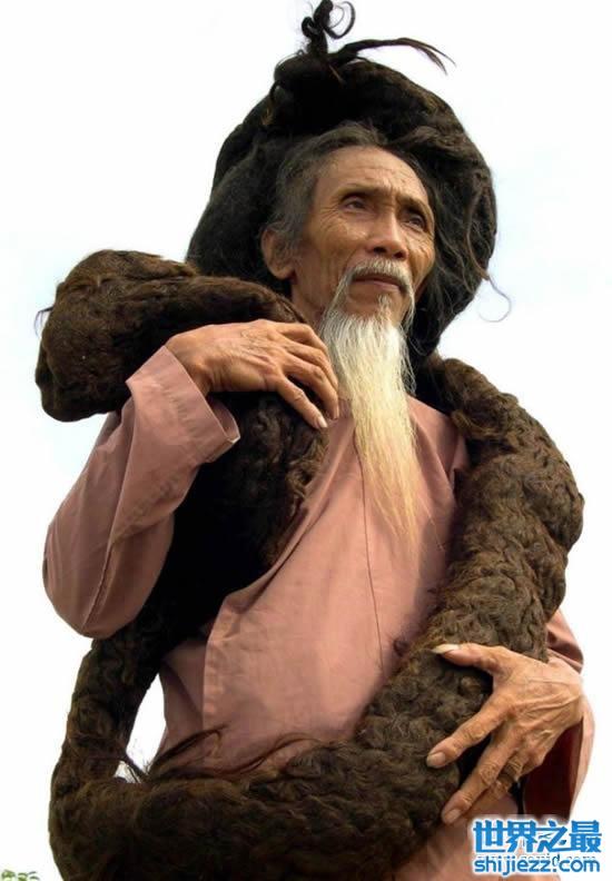 这位60岁的男子来自印度古吉拉特邦Vadorara,他的头发已经留了近60年,他总是会给他的头发最好的照顾。每隔两天,他都会花费3个小时的时间来清洗它,并在他的农场里散步顺便风干头发。他还会在树荫下乘凉,并让他的孙子们将他的头发摊开,给头发晒晒太阳。