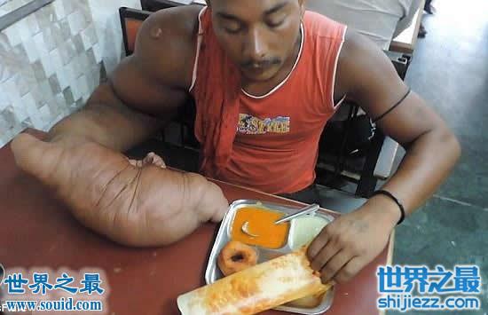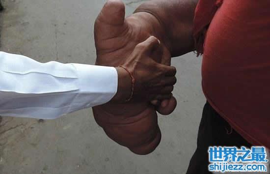 印度男子长40斤巨型手臂,被称“恶魔之子”
