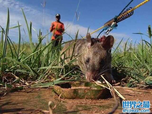 非洲巨鼠(African Giant Pouched Rats)用灵敏的嗅觉闻出地雷的位置