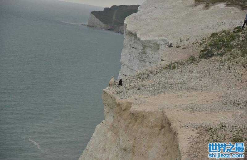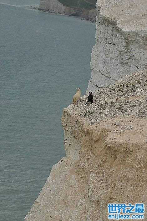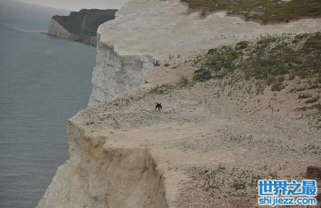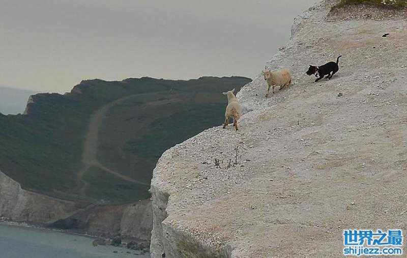 英国黑狗疯狂追赶两只绵羊使其跳下悬崖坠亡