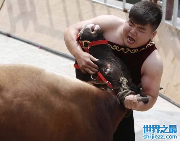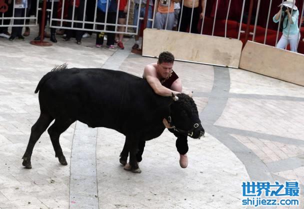 公牛体形起码比参赛者大两倍。