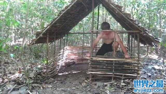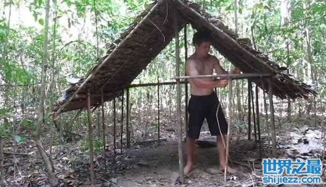 外国男子化身“原始人”在大自然中取材徒手建屋钻木取火