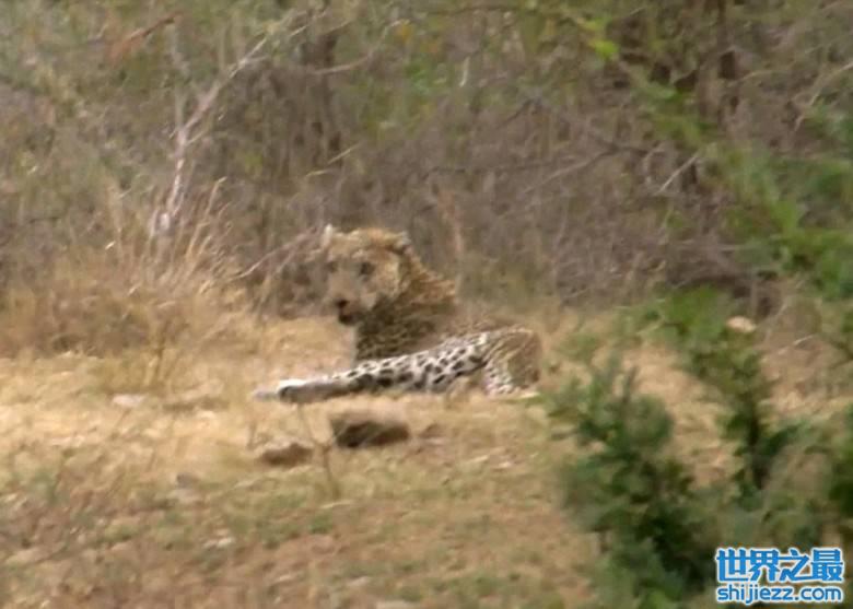 此图乃摄于花豹施袭前30分钟,可见花豹身上有打斗痕迹。