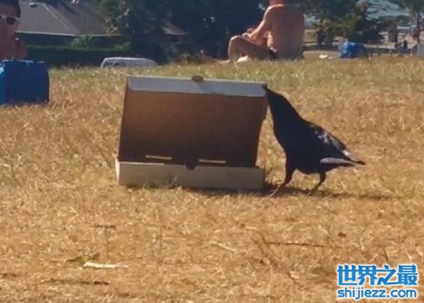 乌鸦聪明得会打开薄饼盒“找吃”。